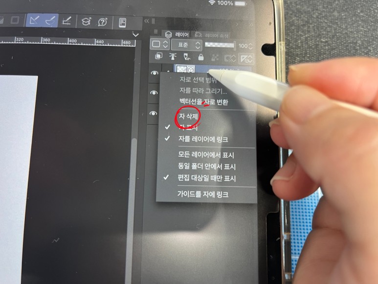 '자 삭제'를 선택하면 대칭자가 사라집니다.